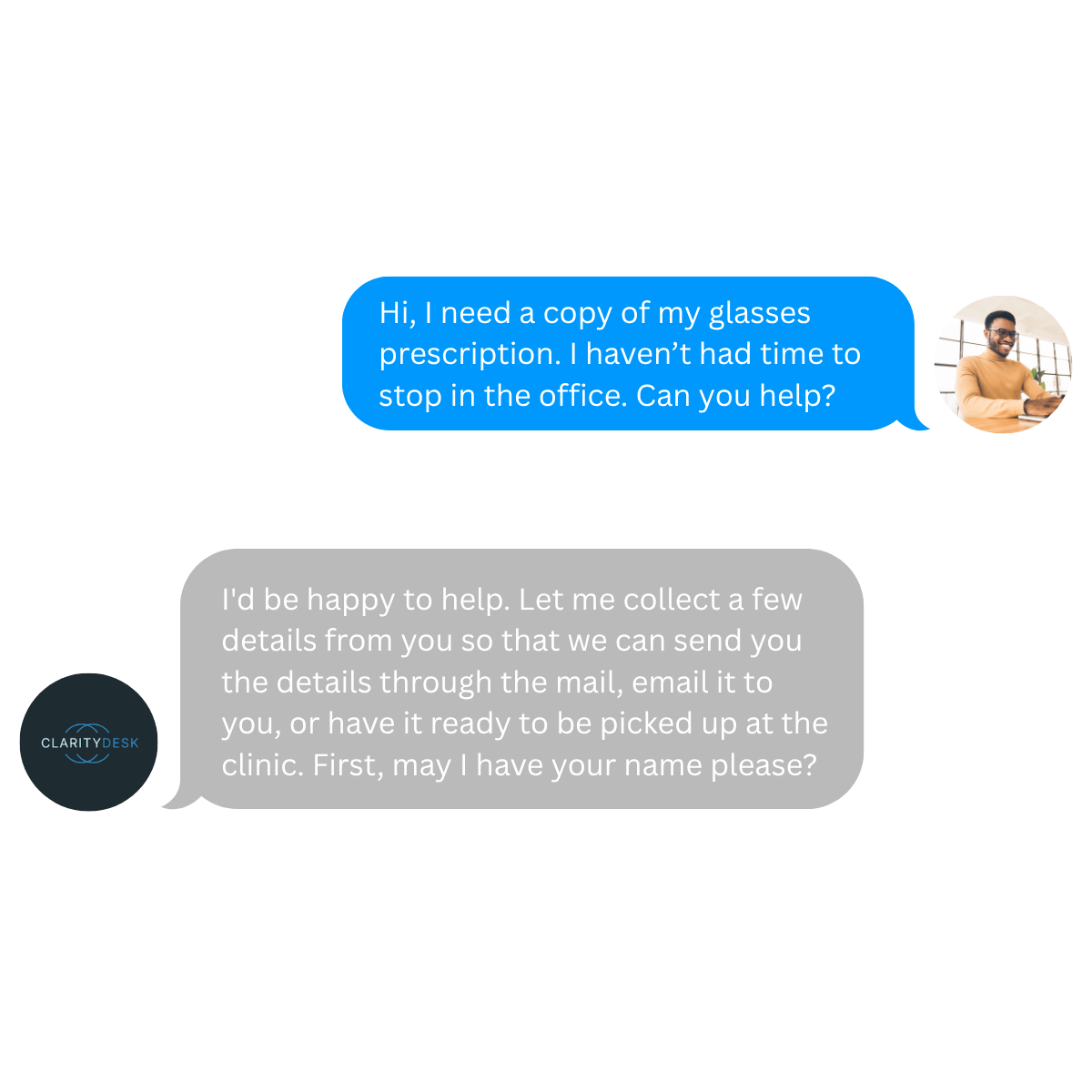 ClarityDesk doesn't replace your front desk — it backs them up. It catches the calls they can't get to, handles repetitive non-clinical questions, and sends clear follow-up details so staff aren't starting from scratch. Less phone pressure, less burnout, fewer missed patients.